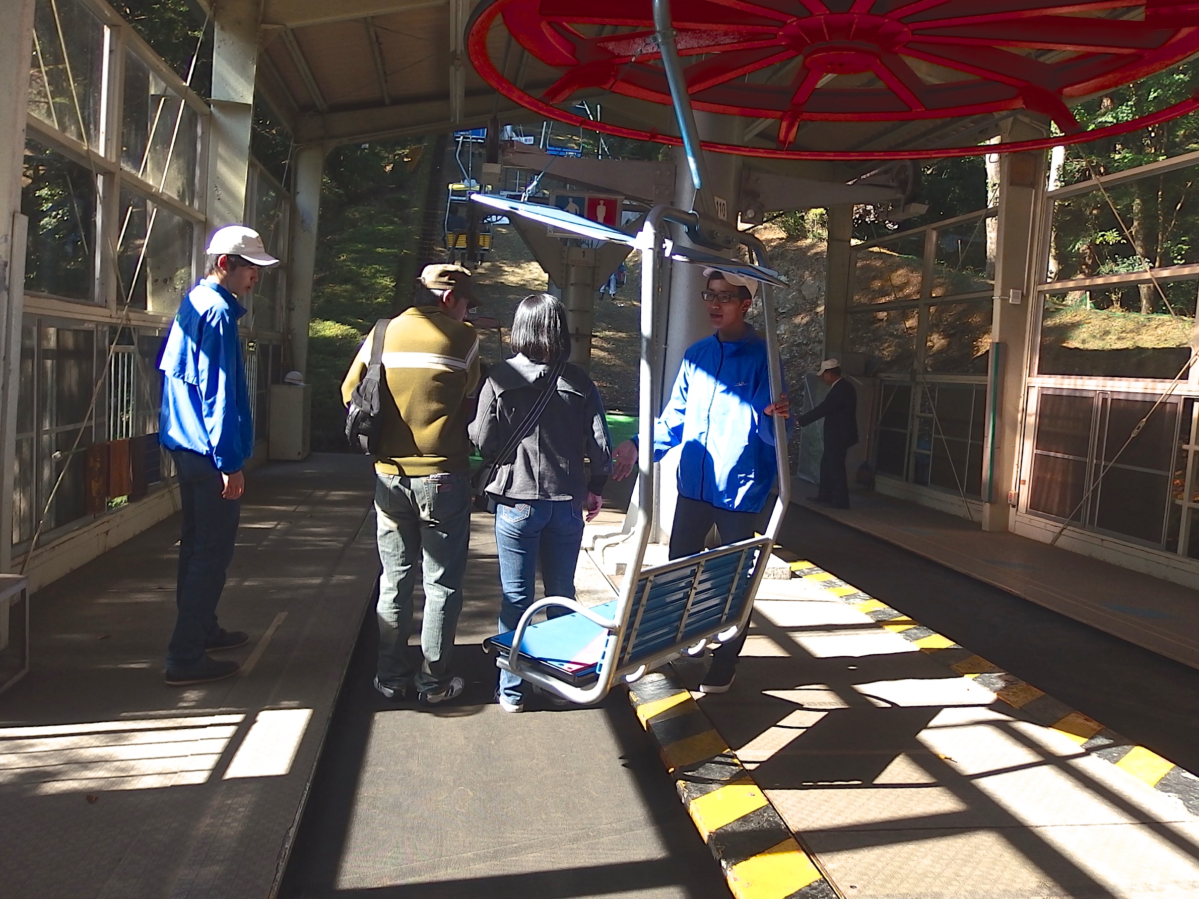 上りはエコーリフトに乗ることにしました。ケーブルカー、エコーリフトとも同じ料金。キップ売り場は、列がグチャグチャしていますが、どの窓口に並んでも、ケーブルカー、エコーリフトのキップを買えます。一番隅にある自動券売機が空いています。