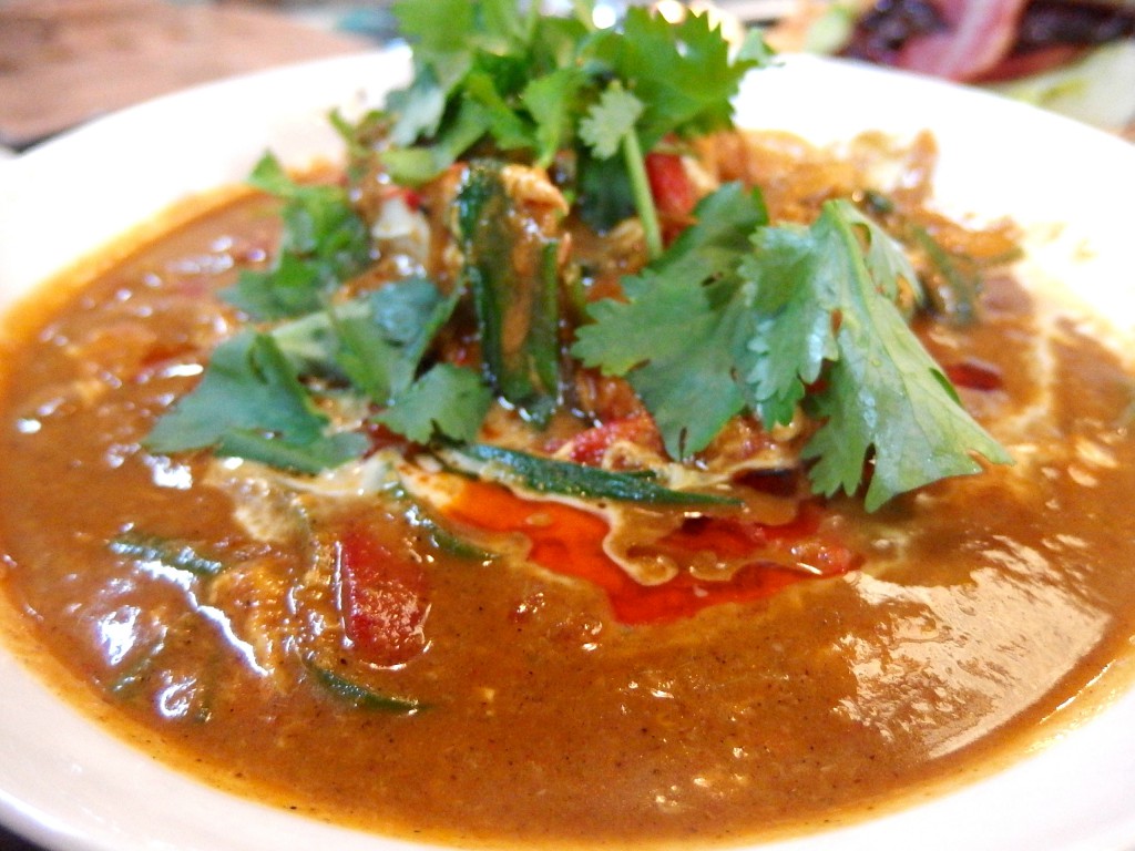 カレーには、カニの風味がしっかり溶け込んでいて、タイカレーらしくピリリとくる。