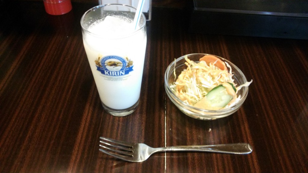 キリンのグラスにラッシーがはいってた。おもしろい。味はちゃんとラッシー!