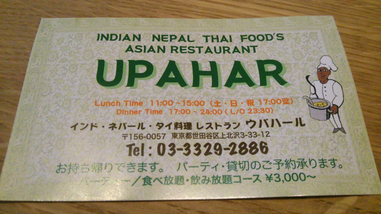 今日のランチは、上北沢駅前にあるインドカレー屋さんウパハールです。南口の出口をでたらすぐ右手にあるお店です。