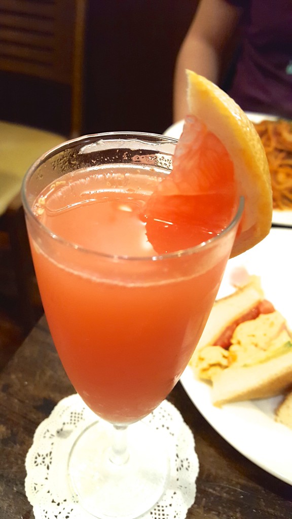 一緒に注文した。生搾りグレープフルーツ。果汁をそのまま絞ったフレッシュでスッキリ飲める。